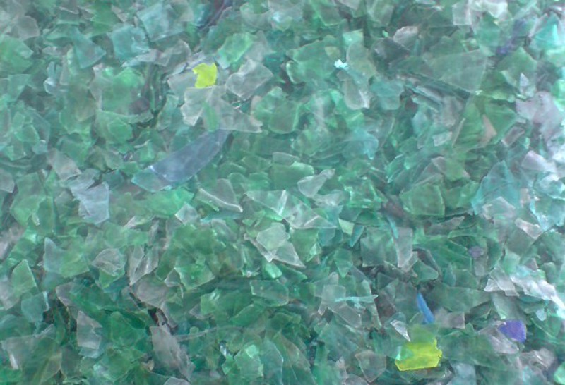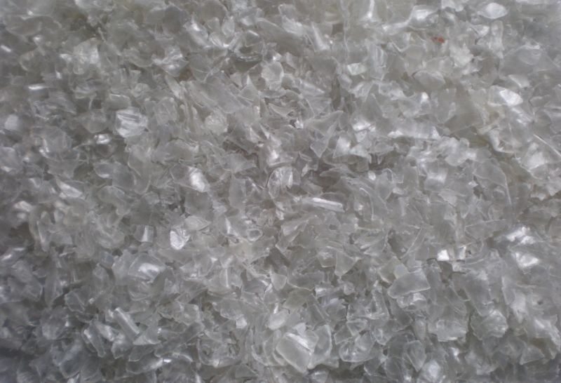 La escama PET es el material resultante de triturar envases y productos de PET (polietileno tereftalato) principalmente botellas después de haber sido recolectados, clasificados y lavados en el proceso de reciclaje.